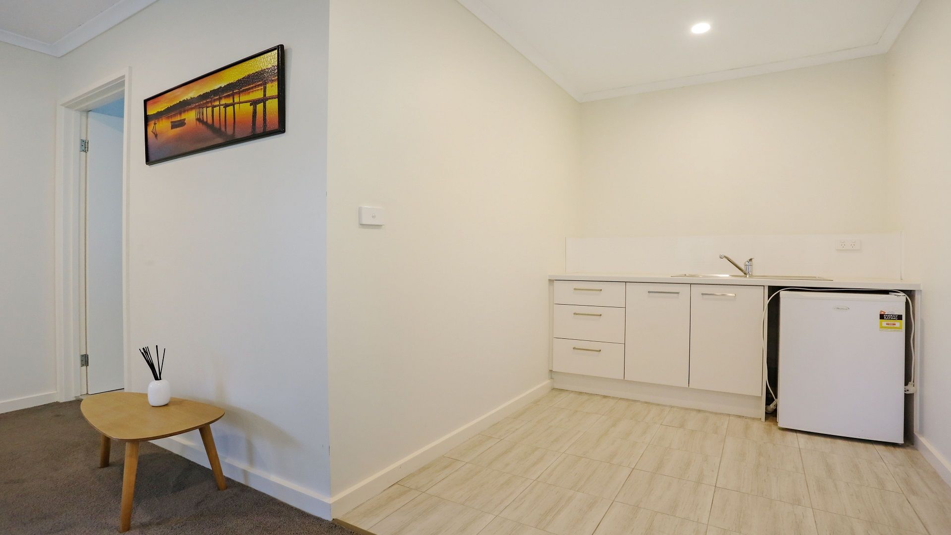 Small Kitchenette: A kitchenette is provided downstairs for preparing light meals or snacks, making it convenient for guests staying in the lower level.